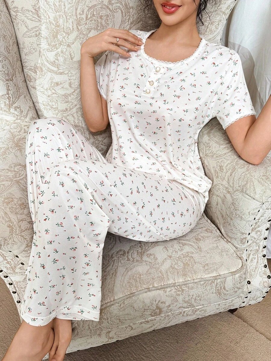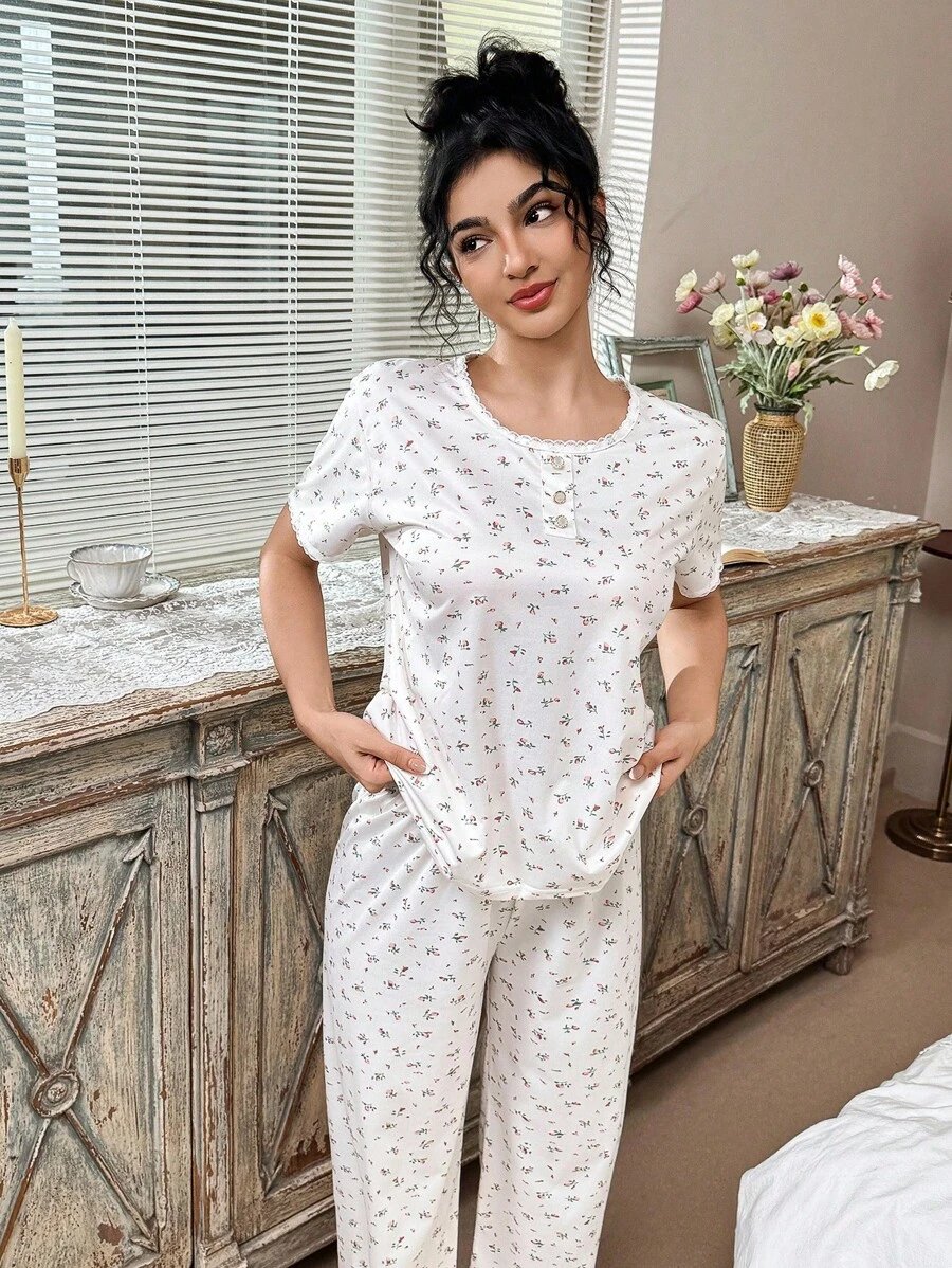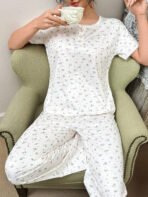 الرئيسية ملابس نسائيه بجايم بيجامه برسومات زهرية صغيرة